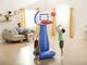 Basketbalový nafukovací set o velikosti 1,04 m x 97 cm x 2,08 m.