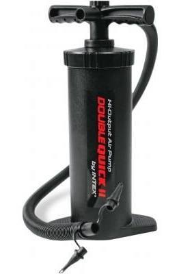 Pumpa ruční dvoučinná DOUBLE QUICK III s. Má 3 spojovací koncovky, které pasují na malé, střední i velké nafukovací ventily. Umožňují též snadné vypouštění vzduchu opačným koncem nástavce. Universální připojení na ventil umožňuje nafukovat matrace, čluny, míče a další. Pro snížení námahy nafukuje jak při tlaku dolu, tak při tahu nahoru.