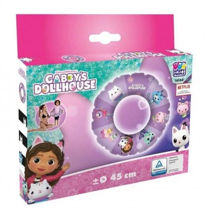 Gabby's Dollhouse plavecký kruh, nafouknutý cca. 45 cm, vyfouknutý cca. 50 cm.