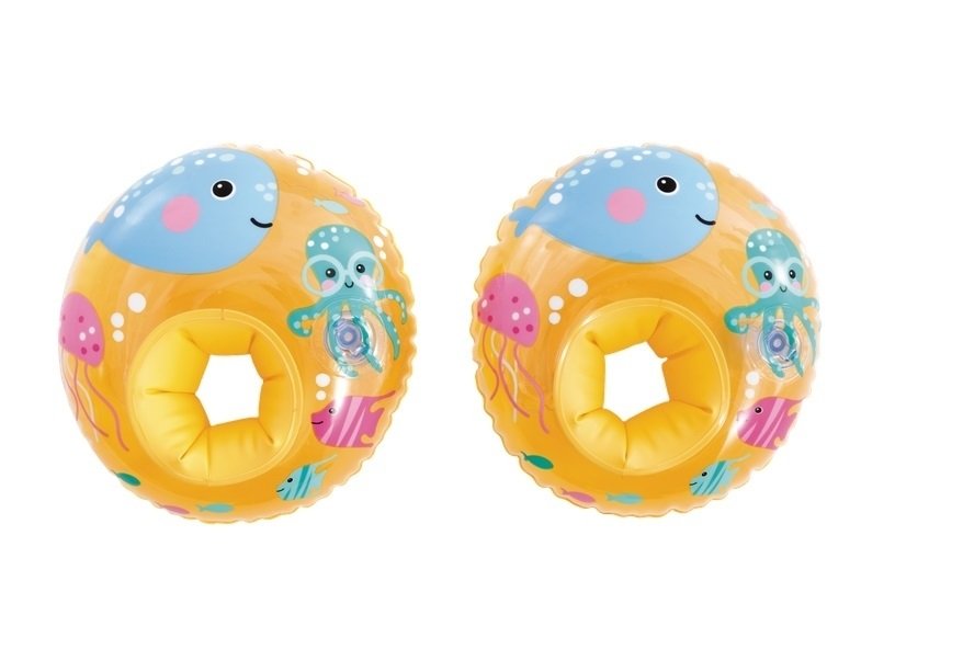 Veselé nafukovací oválné rukávky ve žluté barvě s obrázky mořských kamarádů.