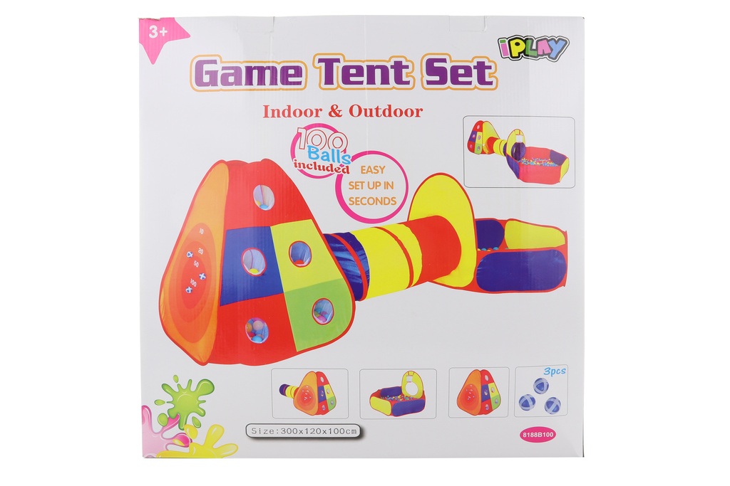 Zábavný stan s tunelem a suchým bazénem plným barevných míčků. Úžasná zábava pro malé i větší děti.