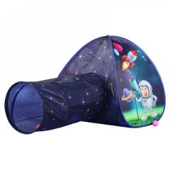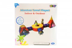 Velký skládací stan a tunel pro hru doma i venku. Vstupní otvor se síťovanými dvířky na zavírání, skládací periskop na střeše a tunel v zadní části.