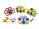 Dřevěná hra Barevný páv obsahuje 4 pávy (hrací základny), 36 dřevěných žetonů v 6 barvách a 20 hracích kartiček.