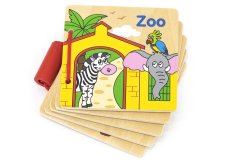 Dřevěná hra je založená na rozpoznávání předmětů a jejich rychlém přiřazení.