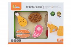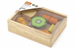 Dřevěná pizza s doplňky pomůže při hře rozvinout u dětí motoriku a fantazii.