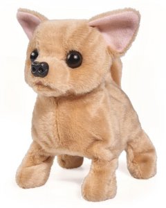 Plyšový pejsek čivava umí běhat, štěkat a vrtět ocáskem.