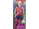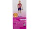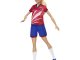 Fotbalová panenka Barbie (cca 29 cm) v červeném dresu, který se skládá z červeného trička s bílým pruhem, číslem „9“ a týmovou nášivkou a modrých šortek, kopaček a vysokých bílých ponožek.