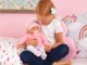 S přiloženým talířem, vidličkou, lžičkou, chrastítkem, pečovatelským příslušenstvím a dudlíkem lze panenku krmit, bavit, pečovat a utěšovat.