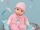 Látková panenka má velikost 30 cm, nosí růžové dupačky, šátek a čepičku s puntíky do barvy. Hlavička panenky je vyrobena z měkkého vinylu, tělíčko je také příjemně měkké, a proto si děti panenku oblíbí pro chvíle mazlení.