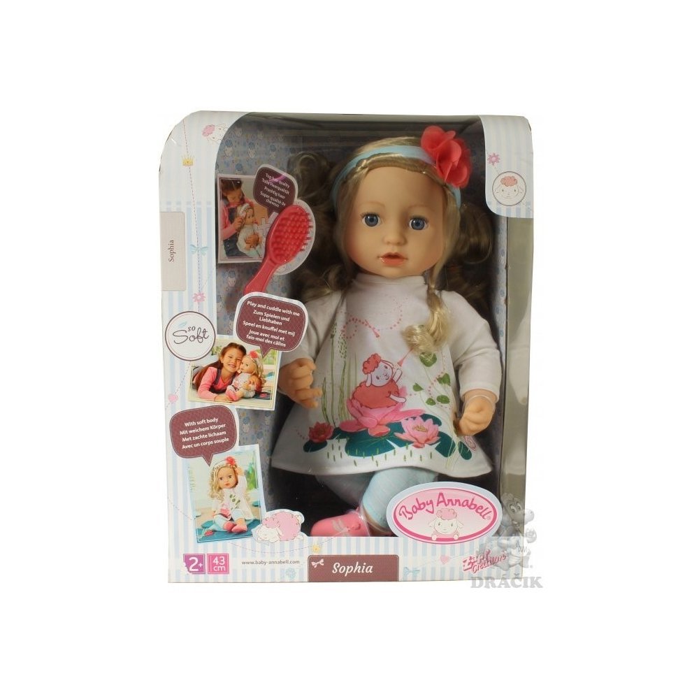 Baby Annabell Sophia je panenka velikosti cca 43 cm, která je oblečena v šatičkách, legínách a botičkách.