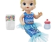 Obsahuje odnímatelný top a spodek mořského ocasu, stříkací hračku (mořského koníka), lahvičku a plínku.