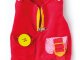 Na kapse u vestičky je všitý veliký dřevěný knoflík na trénink zapínání.