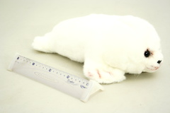 Plyšový tukan o velikosti cca 41 × 14 × 28 cm.