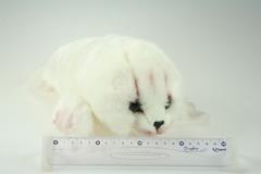 Překrásně propracovaný plyšový oslik má v nohách kovové vzpěry, aby dokázal sám stál.