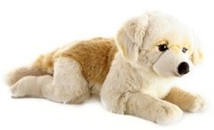 Plyšový hnědý tygr o velikosti cca 55 × 28 × 18 cm (bez ocasu), délka ocasu cca 37 cm.
