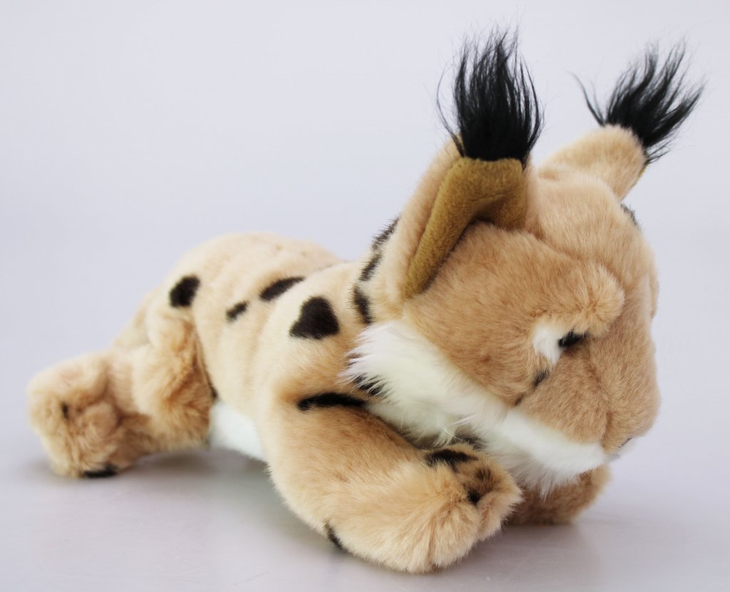 Plyšový rys o rozměru cca 23 × 17 × 14 cm.