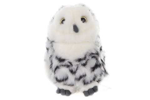 Plyšová sova o velikosti cca 18 × 12 × 12 cm.
