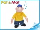 Plyšový kutil Pat oblečený do svého typického žlutého trička a modré rádiovky.