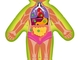 Po otočení lícové části puzzle (kůže), vidí dítě na rubu orgány a pod nimi kosti, které se na tomto místě skrývají.