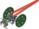 Stavebnice malého traktoru s vlekem a základním příslušenstvím.