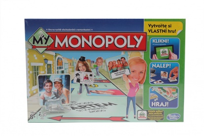 S My Monopoly ale můžete hrát i klasické Monopoly, protože na desce jsou vytištěná také tradiční políčka s nemovitostmi. Česká verze hry.