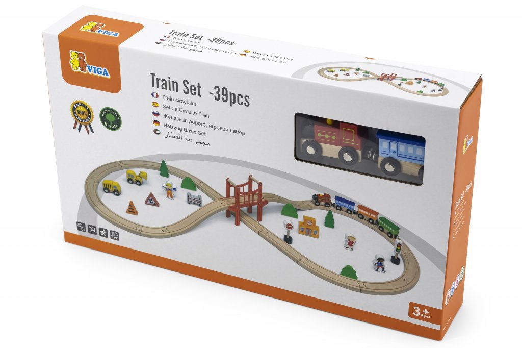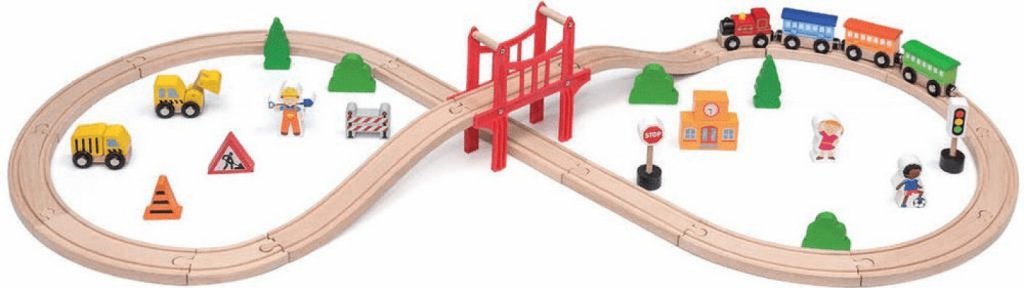Dřevěná vláčkodráha ve tvaru čísla 8.