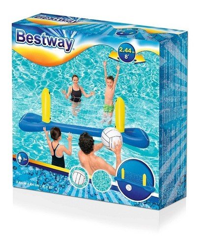 Volleyball set udělá z Vašeho bazénu doslova místo zápasu. S přáteli nebo rodinou si to můžete rozdat o vítězství přímo ve vodě. Nafukovací set Voleyball o rozměrech 252 × 64 cm obsahuje nylonovou síť, hrací míč o průměru 41 cm. Volleyballový set je vyroben z kvalitního vinylu.