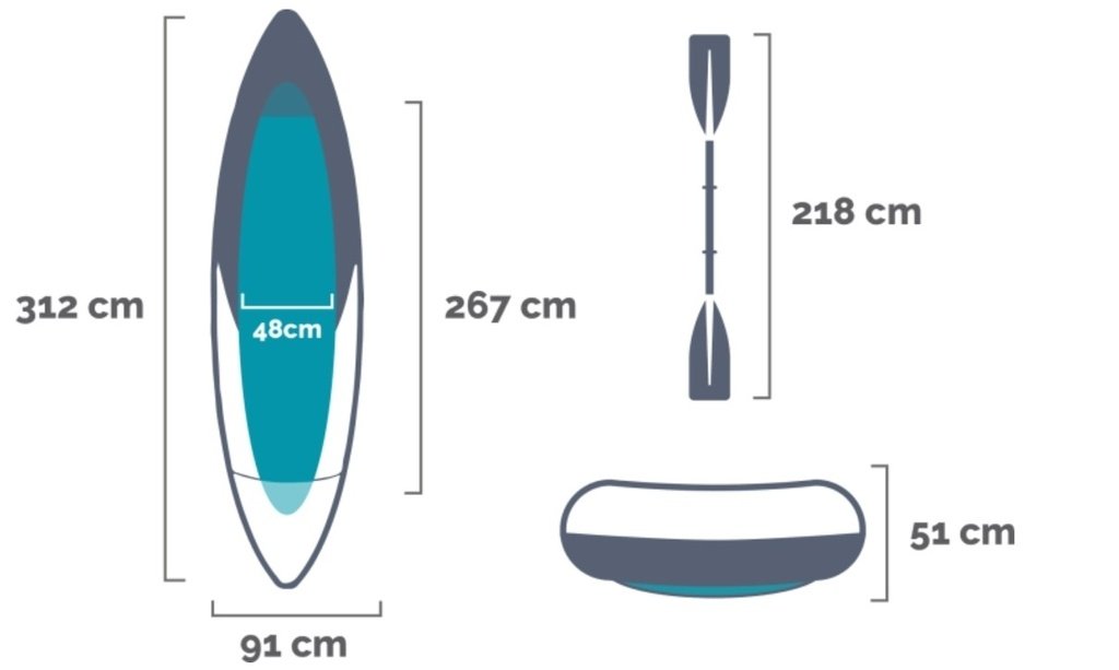 Součástí balení: kanoe, pumpa a 2 x hliníková pádla