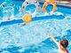 Nafukovací terče ve tvaru žraloků do vody s nafukovacími disky. Tři žraločí otvory se skóre 10, 30 a 50 bodů odlišené barvami oranžová, žlutá a modrá.