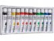 Balení obsahuje 12 barev (bílá, žlutá citronová, okrová, oranžová, červená, sv. modrá, sv. zelená, tm. modrá, hnědá, tm. modrá, černá).