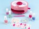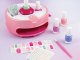 Nehtové studio se sušičkou, barevnými laky na nehty a dalšími věcmi pro zkrášlení nehtů.