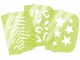 Balení obsahuje: 6 barevných vlasových kříd, jhubičky, klip na šablonu, 3 šablony, návod uvnitř balení.