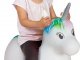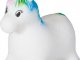 Hopsadlo ve tvaru jednorožce v bílé barvě s barevnou hřívou a barevným ocáskem. Materiál PVC.