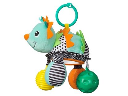 Roztomilý ježek, který upoutá pozornost dítěte svými výraznými barvami, chrastěním při pohybu i bezpečným zrcátkem na bříšku.