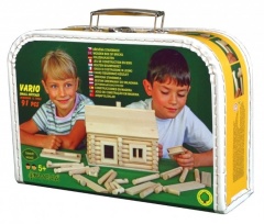 Stavebnice z masivního bukového dřeva (průměr 15 mm) v praktickém kufříku. Lze ji skládat i rozkládat. Z této stavebnice postavíte mnoho variant staveb.
