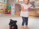Černé štěňátko s mašličkou kolem krku umí chodit a štěkat . Stačí stisknout knoflík na vodítku.